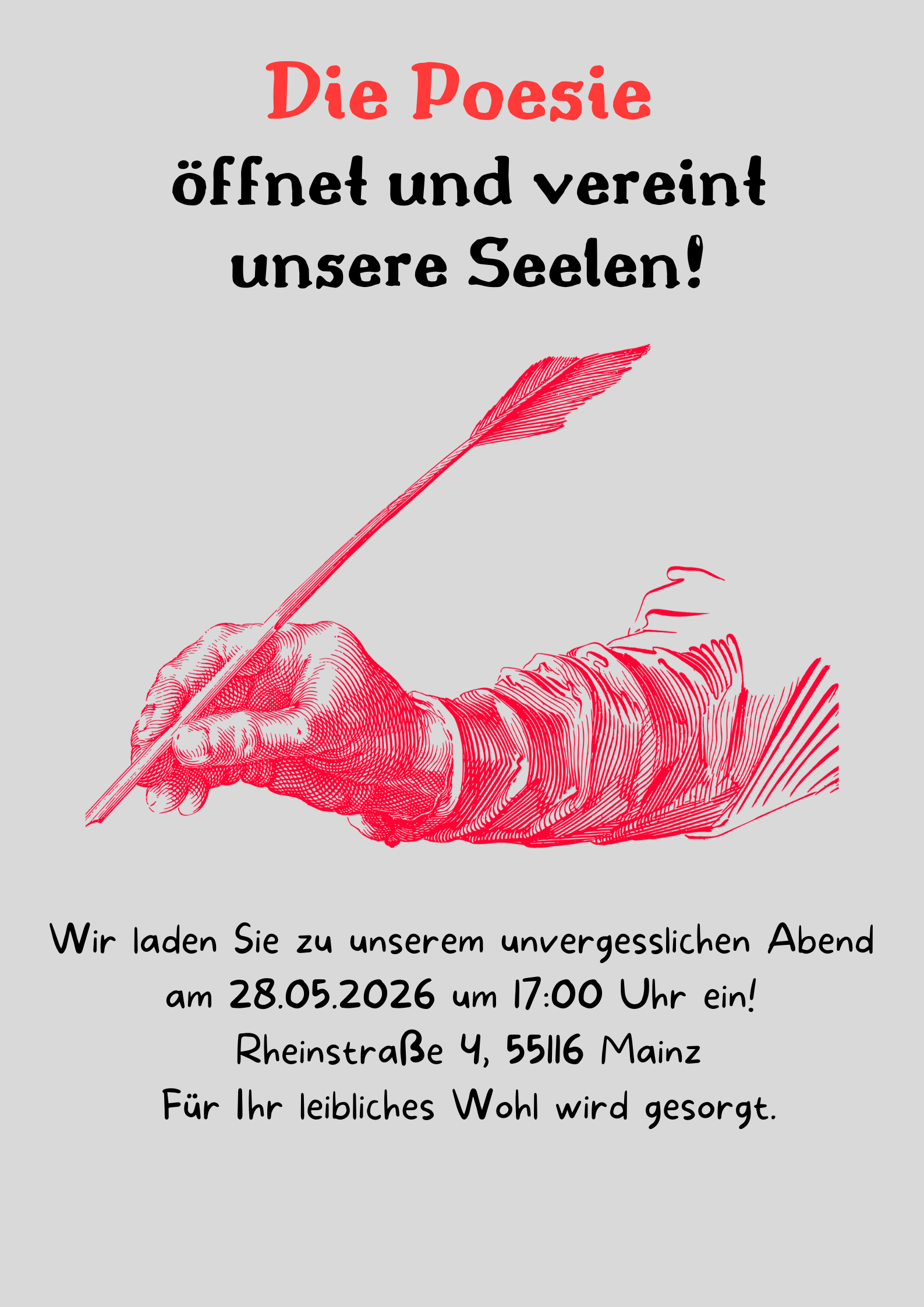 An diesem besonderen Abend werden Gedichte in verschiedenen Sprachen vorgetragen – von klassischen Werken bis hin zu zeitgenössischen Stimmen. Jede Sprache erzählt dabei ihre eigene Geschichte, doch alle Gedichte haben eines gemeinsam: Sie sprechen von der menschlichen Seele, von Gefühlen, Sehnsüchten, Träumen und der unendlichen Vielfalt des Lebens.